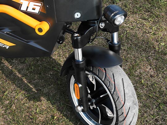 F2 has a outstanding off road performance.Especially in the sand area. 500W powerful dual rear brushless motors provide strong power and the grade ability can reach 15°. Front and dual disc brake make the off road more safer. Front and rear dual suspension makes you have a more comfortable riding.